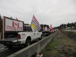 We caught up with the convoy just south of Parksville and it was a very jolly event. All the protesters were keeping good convoy discipline and driving safely. The lines of cars, trucks, and transport trucks were decked with Canadian flags. I saw a snippet of Jagmeet Singh saying the Freedom Convoys were flying hateful flags and I would like to ask him just what it is he finds hateful about the Canadian flag?