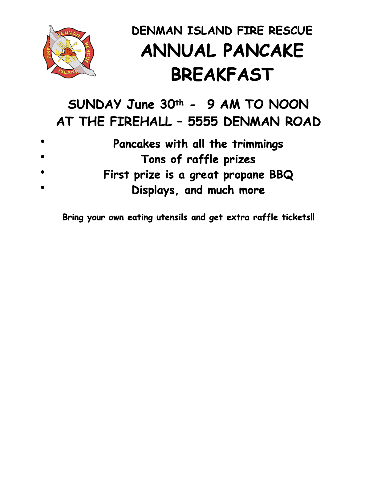 Denman Island Fire Rescue’s Annual Pancake Breakfast June 27, 2024 908 FacebookTwitterPinterestWhatsApp Share this page
