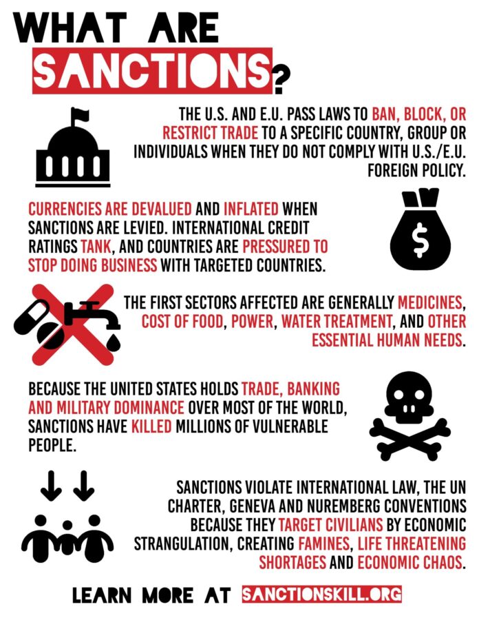 And your use of sanctions is brilliant! To think that the US (4% of world’s population) and to a lesser extent the EU, are now “sanctioning” more than 1/4 of the world’s countries, and nearly 1/3 of the world’s economy, wow! (Center for Economic & Policy Research, The Human Consequences of Economic Sanctions, 2024.) This detailed report reviews 32 cross-national studies that assess impacts of economic sanctions on living standards. 30 of those studies found “significant declines in living standards in sanctions-targeted countries, including Afghanistan, Iran & Venezuela.” Venezuela, for example, has seen the exodus of 25% of their population since 2017. How much of that is due to the War System’s crippling sanctions? As Congressman Jim McGovern, Chair of US House Rules Committee, stated in a letter to Biden (May, 2021): “Economic pain is the means by which the sanctions are supposed to work….it is not the Venezuelan officials who suffer the costs. It is the people. Credible sources have consistently found that sanctions have worsened the humanitarian crisis in the country.” (CEPR report, above.) Sanctioning may well create an “immigrant problem”, but hopefully you’ll get the toadying government you want there soon. In any event, it’s never bad for the War System.