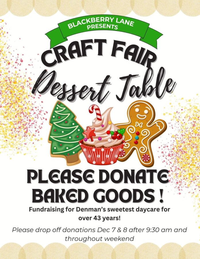 The air has chilled and the leaves are falling which means that the Denman Island Christmas Craft Fair is around the corner! This year it is being held on December 7th & 8th, and Blackberry Lane, the island’s only licensed childcare facility, is once again hosting the dessert table in the back hall and has been for over 20 years! We rely on donations to make this event a success and our Centre relies on fundraising to help us continue to operate. This is a great time to bake that special item you love to make but don’t want to eat all of or maybe you want to double your favourite recipe to share. Brownies, cinnamon buns, pies, cakes and gingerbread creatures are always excellent sellers! We accept donations starting at 9:30 on Saturday morning in the backhall, and throughout the weekend. Please label dishes if you would like them returned and including an ingredient list is helpful!