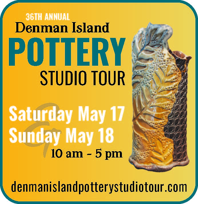 The Pottery Studio Tour runs 10am-5pm Saturday, May 17 and Sunday, May 18. Maps and more information are available at denmanislandpotterystudiotour.com.