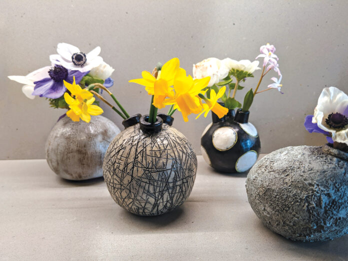 “I’ve been really enjoying making orb forms and putting them together on the table instead of a tall vase,” she says.