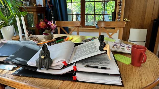 Gabriel Jeroschewitz, September 15th, 2025. With MR. Reaper and MS. Reaper, helping with some editing, their friend, the Garden Noam, is sunbathing outside, we think
