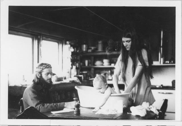 (Valerie and Greg Straw giving their baby a bath in the makeshift shed where they were living on Canada’s west coast in Mitchell Bay in the 1970s. Photo courtesy of Joline Martin The history of war resister immigration)